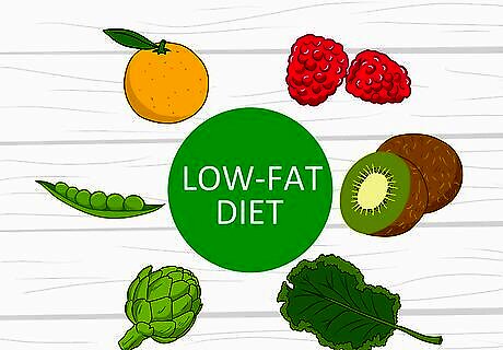 Manage your weight with a low-fat diet. Minimize foods high in saturated fats and sodium in your diet. Focus on eating more fruits and vegetables, which are rich in dietary fiber and low in fat. Your doctor can help you determine an ideal “goal” weight for you to maximize your health. Raspberries, kiwis, dark leafy greens, artichokes, peas, celery, and oranges are all great sources of dietary fiber.