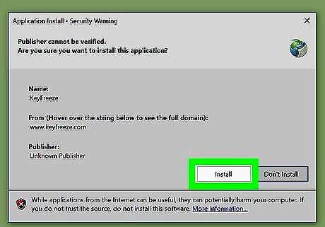Click Install. Keyfreeze will now install. When it’s finished, it will launch automatically. In the future, you will be able to open it by clicking Keyfreeze in the All Apps area of the Start menu.