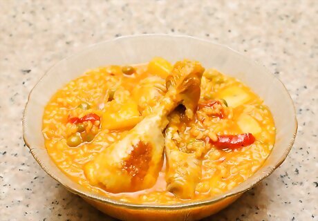 Choose seafood-based meals in the south of Spain. Spain is characterized largely by its Mediterranean roots. It is bordered on all sides, except the north, by water, and the following are typical seafood dishes: Paella is often referred to as Spain's national dish, although it has Moorish influences. Seafood paella is called "paella de marisco." It is common to find "paella de mixto," which features a mixture of seafood with chicken and sausage. Paella is made with rice, mixed vegetables, saffron, paprika, meat or seafood. Occasionally it is flavored by squid ink. Fried fish, called "pescaito frito" is common along the coast. It is usually a white fish that is battered and fried. It is often eaten hot or cold. Calamari is a common meal or appetizer in Spain. It was first brought over from Rome. Small squid are battered, fried and served with a dipping sauce. Many other cultures, including the United States, have adopted fried squid as an appetizer.