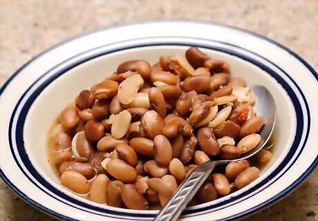 Choose to eat beans, or "frijoles," at most meals during the day. These beans are often boiled and then fried, earning the name "refried beans" in English. They are served along with meats, tortillas or in dishes.