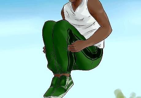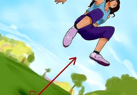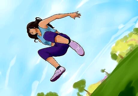 Land with your feet spread the same distance as before, about the same as your shoulders. Bend your knees as you land to absorb some of the force, and use your arms to balance yourself so you don't fall forwards or backwards. Always land on the balls of your feet.