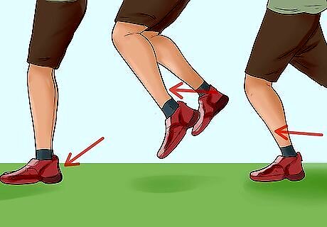 Run forward at a moderate speed. Don't run so fast that you throw yourself off balance when you plant, and don't run so slow that you can't complete the flip. Many people have a tendency to run fast, thinking this will make for a powerful flip, but they often end up not jumping high enough, which results in landing on their back. A fast jog is sufficient.