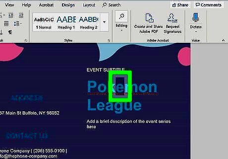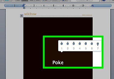 Place your cursor where you want to insert the accent. If you have a letter typed out, you'll want to select it so the accent will be added to your letter. For example, if you have Pokemon written, you'll want to highlight the e.