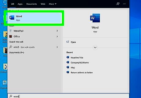Open Word. You'll find this application in the Start menu and can either open a saved document (File > Open) or start a new one (File > New).