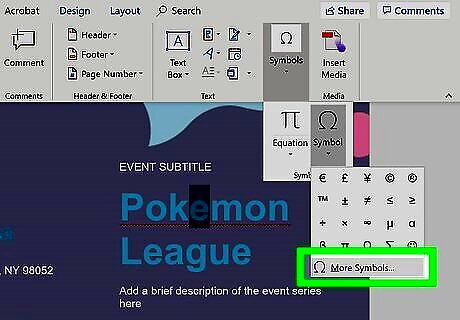 Click More Symbols (if you don't see it already). If you are able to select your accent from the list of recently used symbols, you can skip this step. If you can't find your accent immediately, make sure you look through all the available fonts since different font sets generally have different symbols.