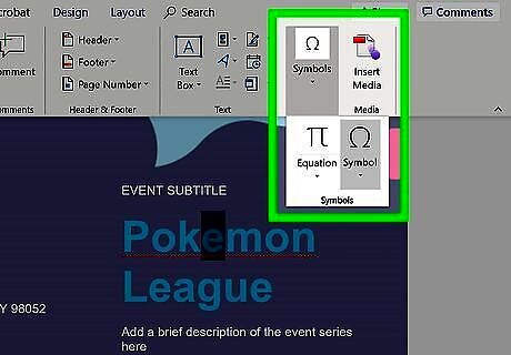 Click Symbol. You'll see this in the "Symbols" grouping next to "Equation" and a list of recently used symbols will drop-down.