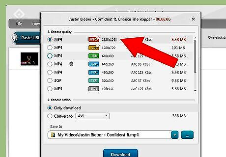 Choose a necessary video quality (1080p, 720p, 480...) and a video format (MP4, FLV, WebM, etc.)
