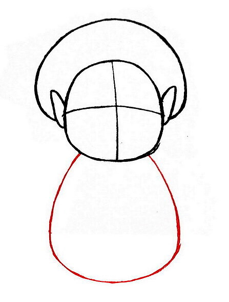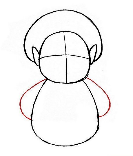 On each side of the body, draw an arch. These arches should originate from the head; they will soon become arms.