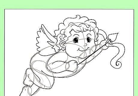 Make the legs by overlapping ovals on the body in the same way as the hands. Finish these with horizontal ovals (again, follow the illustration). At this point everything should still be in circles and ovals--be patient, soon your cupid will begin to take shape.