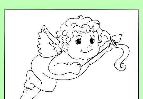 Erase the pencil from your drawing and start coloring. Try to use light, Valentine-y colors; look at the illustration for reference. Use light colors.