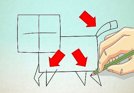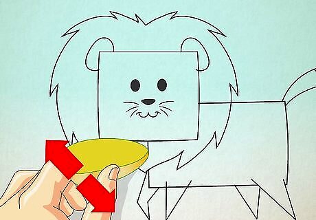 Draw the four legs of the lion using small sharp angles. Add the tail at left upper corner of your rectangle.