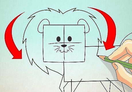 Draw the hair of the lion using small curved strokes. Make it look thick and furry.