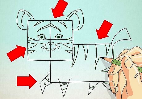Draw patterns on the tiger’s body. You can use small triangles for the pattern.