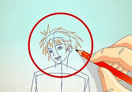 The hair is always messy and standing up in odd angles. So, go wild and draw a messy tuft of hair. The guy in the introductory drawing has a hat, another boyish feature.