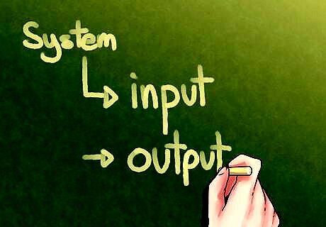 Know that the simplest system has an input and an output. System comes between these two. input goes into the system, then becomes altered and then goes out as the desired output. A system is built to create such a desired alteration for the output.