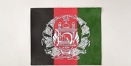 If you are looking to draw the flag of Afghanistan, it helps to know that the emblem is detailed and you will need to take great care and use patience to draw it well. In particular, pay close attention to the proportion of the parts of the emblem.