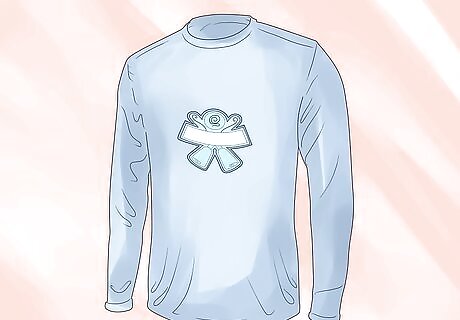 Pull on a shirt and pants. Wear a short or long-sleeved T-shirt with a player number on the back. If your team does not have T-shirts with numbers, your league may provide jerseys for you. Also, wear sweatpants or track pants. Some broomball players prefer to wear hockey shorts instead of pants to protect hips when falling.