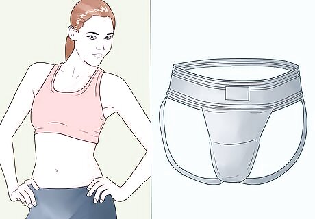 Start with your under-layer. Women should wear a sports bra, as it is a high impact sport. Men use a cup or jockstrap.