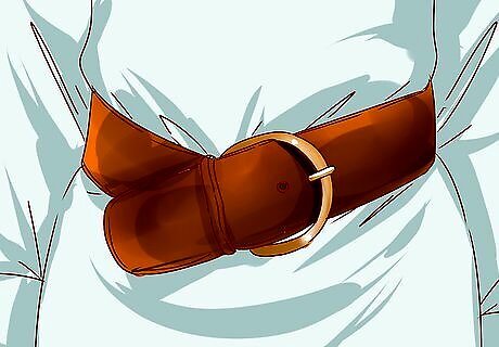 Wear a leather belt. Earhart was a fan of adding a leather belt to her two-piece skirt suits. To recreate her style, cinch the belt at your natural waist, rather than at your hips. Alternatively, pull a leather belt through the belt-loops on a pair of trousers.