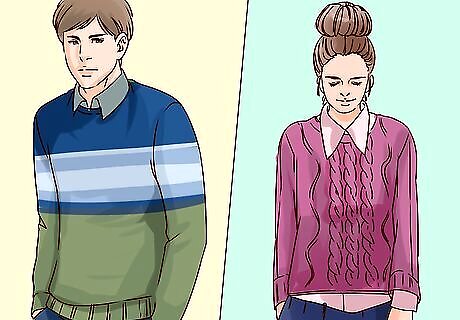 Layer oxford shirts under pullover sweaters. The layered look was one of Amelia Earhart’s favorites. She is photographed wearing knit sweaters over oxford shirts on several occasions. Mix neutral colors by choosing a navy sweater over a tan oxford or a brown oxford under a cream sweater. Add tailored pants and loafers to complete your outfit.