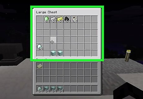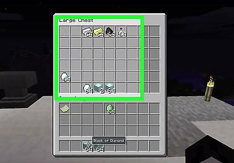 Gather your supplies. You will need 6 blocks of choice (1 must allow redstone to be placed on it) A crafting table Lots of iron ingots, gold ingots, diamonds, and anything else that has blocks and a mineral 3 redstone torches A lever A dropper
