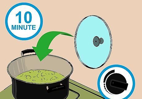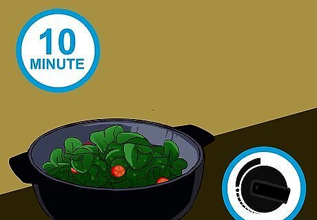 Cook the sorrel with low heat. Once you notice that the sorrel has wilted, lower the heat on the stock to medium-low. Cover the pot and cook the sorrel for about ten minutes, stirring occasionally.