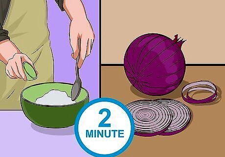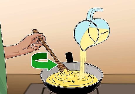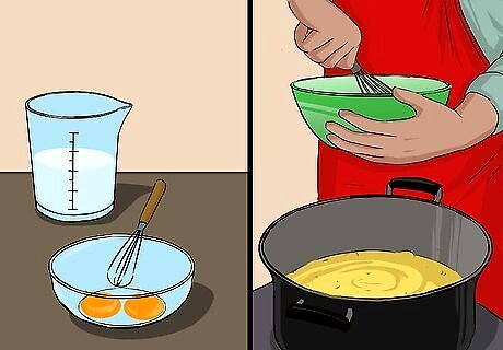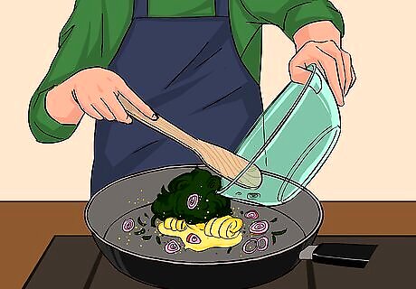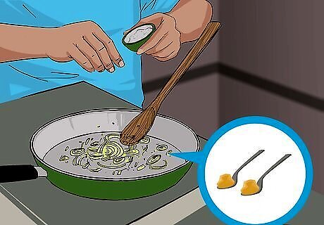 Cook onions until soft. Slice up one medium sweet onion and add it to a heavy pot. Add ¼ teaspoon (1.25 mL) salt and two tablespoons (30 mL) of butter. Turn the heat to medium-low. Stir the ingredients occasionally and cook them until the onions become soft. Instead of onions, you can get sweetness by making a custard out of eggs, milk, cream, and sugar.