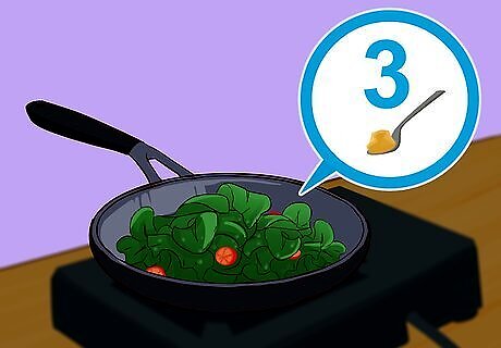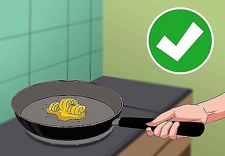 Melt butter in a pot. Set your stove for medium heat. Measure out about three tablespoons (45 mL) of butter. Wait for the butter to melt.