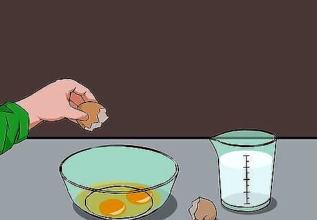 Combine the filling. In a separate bowl, crack open two eggs. Add one cup (240 mL) heavy cream, a pinch of nutmeg, and a pinch of black pepper. Whisk the ingredients.