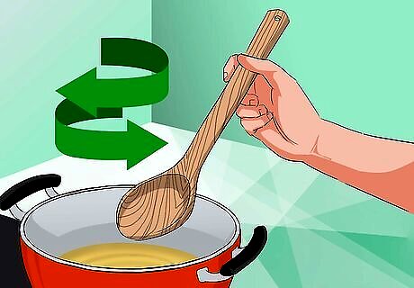 Simmer stock in a separate pot. Pour a quart (950 mL) of chicken or vegetable stock into a pot. Turn the heat setting on another burner to low and bring the stock to a simmer.