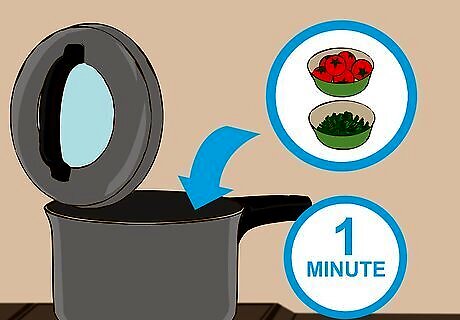 Simmer for ten minutes. Turn the stove’s heat down to a medium-low setting. Cover the pot and let the onion cook for about ten minutes. You may also stir the vegetables from time to time to make sure they get a little soft but don’t change color.