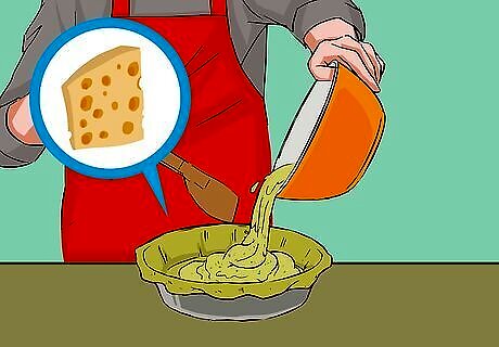 Sprinkle cheese into the tart shell. Line a prebaked tart shell or pie crust inside a round baking tray. Sprinkle another 2.5 oz (70.9 g) of grated Gruyere so it coats the bottom of the shell. The tart shell can be made at home by mixing flour, sugar, salt, and butter. Knead it into a dough, then roll it out over a baking tray. You can add filling ingredients such as beans, rice, or lentils.