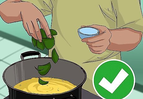Heat the butter and sorrel. In a separate pot, combine three tablespoons (700 mL) of butter and along with the sorrel. Use medium heat to melt the butter and begin cooking the sorrel. Stir often until the ingredients melt into a strong green color.