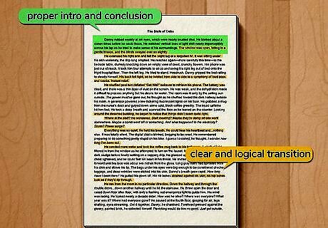 Work on the structure. If you're writing a scholarly submission, you'll need a proper introduction and conclusion. If the manuscript is a creative work, it will need a compelling beginning and a strong ending. And on a page-by-page level, the entirety of the manuscript should be arranged with a clear and logical progression that leads the reader naturally from the beginning to the end. Look for transitions that guide the reader from one paragraph to the next. If your transitions are weak or lacking altogether, compose a sentence or two that will serve as a transition to the next paragraph. When you were reading through your manuscript, did you find yourself losing interest at any point in the middle of the work? If so, perhaps you need to restructure the body of the manuscript. You may have loaded all the strong sections at the beginning and ending and forgotten to focus on the body of the piece. Rewrite these sections as needed.