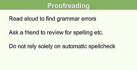 Proofread your letter. It is essential to ensure that your cover letter is free from errors. You will not convey that you have attention to detail and professionalism if your cover letter has spelling and/or grammatical errors. Carefully comb through the letter for mistakes. Ask someone else to read through your letter as well. This person might catch an error that you didn’t see.