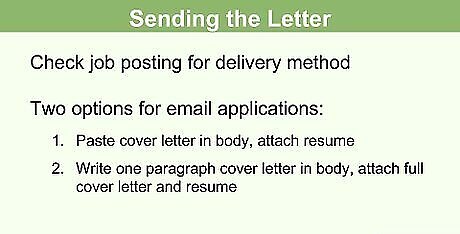 Send your cover letter in the manner requested. The employer will specify how she wants to receive materials. This may be in hard copy through the mail, or through a job application website, or via email. Whatever the delivery method, be sure to follow the employer’s instructions closely. If you are sending the job application via email, you can choose to either include your cover letter in the body of the email, or you can include it as an attachment. If you do attach it as a separate document, write a brief cover letter in the body of the email to explain yourself briefly.
