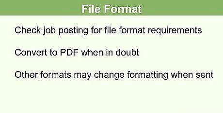 Convert your file to a PDF. Many job applications require that you send the letters via email or through a job application website. It’s a good idea to convert a word processing document to a PDF. This way, you will embed all formatting and your document won’t risk looking incorrect when it’s opened.
