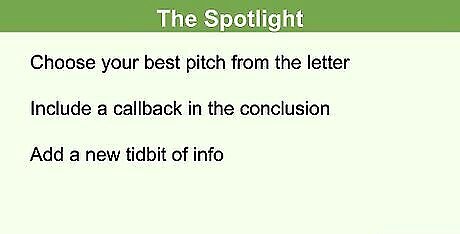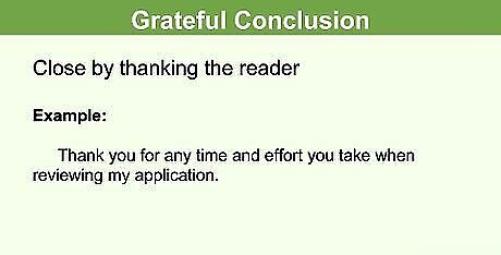 Demonstrate your enthusiasm and confidence. The conclusion is your opportunity to repeat your excitement about the job and your ability to do the job well. For example, you might write: “I am very excited about the opportunity to make an immediate and valuable contribution to your company.”