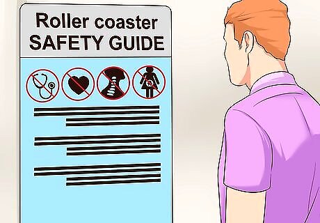 Reassure yourself by learning about safety standards. While it is true that people have been killed and injured on roller coasters, these are most commonly due to people breaking riding rules set by the park. The International Association of Amusement Parks and Attractions calculates the odds of experiencing a fatal injury on a ride at fixed-site amusement parks (such as Disney, Six Flags, etc.) to be one in 750 million. Learn about what kind of safety standards parks have to follow. Far more people are affected by car accidents than by roller coasters, but people are rarely afraid of riding in cars. You could plan which coasters to ride before you go to the amusement park and you could specifically research those coasters to find out the safety features and what their track record is like. Park websites should include safety information.