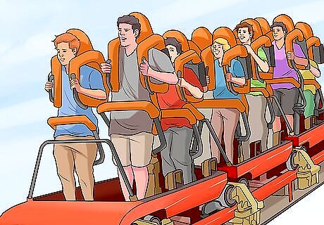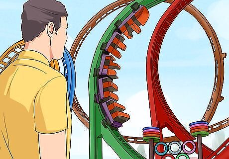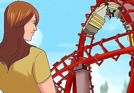 Watch the coaster and the riders. You can get a good idea of what the ride will be like by looking at the coaster’s structure, watching a couple trains go through the circuit, and watching and listening to the riders. If the track has multiple big drops, loops, corkscrews, or other features that scare you, maybe pass on that particular coaster for now. Try to find one that seems like the right intensity for you. If you are with friends, ask if they have ridden specific coasters and can tell you about them. You can also ask people coming off of the ride what the experience was like for them.