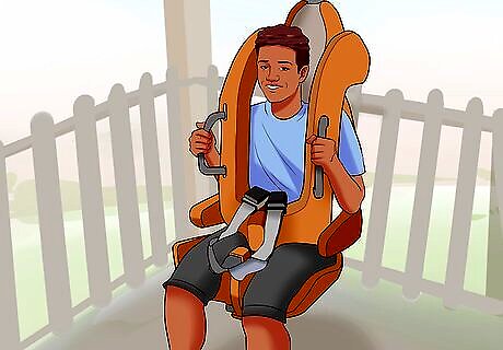 Sit in the test seat. At the entrance to many roller coasters is a model of the seat featured on the ride. Before going on the coaster for the first time, try out the test seat to make sure you will be comfortable with the seat itself and the straps, pull down bars, and harnesses the seat has. If you aren’t comfortable in the test seat, you will most likely not be comfortable once the ride is fully in motion.