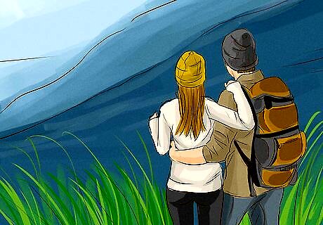 Share the view with a friend if you want company. Enjoying a view doesn’t have to be a solitary pursuit. Call up a friend or ask a loved one to join you for a peaceful outing to your favorite scenic spot. Your companion might point things out to you that you normally wouldn’t notice, or you might do the same for them. Sharing a favorite view or discovering a new view together can be a great way to bond with a friend or loved one. Even if you both just take in the view in silence, you may find that the experience is even more enjoyable and meaningful if you’re with someone you care about.
