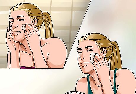 Rinse off the scrub. Wet a clean washcloth with warm water, and use it to remove the scrub. Avoid using water that is too hot, since this can dry out sensitive skin.
