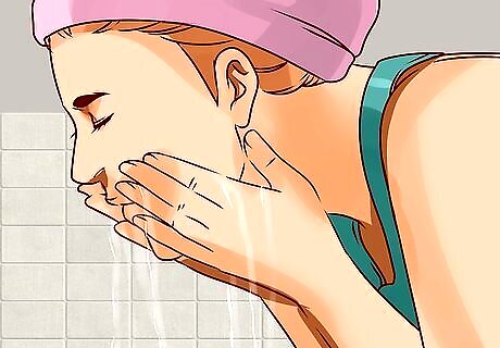 Wet the dry and affected area. Wash your skin with a clean washcloth and clean hands, using warm water. The washcloth should be as soft as possible to prevent irritation; many dermatologists recommend a muslin washcloth. If your skin is sweaty or dirty, wash it with a gentle cleanser instead of just water and a washcloth. If you’re wearing makeup and want to exfoliate your face, remove the makeup with a cold cream after you wash your face. Use a headband or hair elastic to keep your hair out of your face if you’re washing your face.