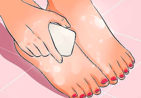 Rub the dry area with the pumice stone. When using a pumice stone, use light pressure and quick, brisk strokes on wet skin. You should only use the stone for a minute or two in each affected area. Avoid pressing too hard, since this will lead to sore skin and reddened areas.