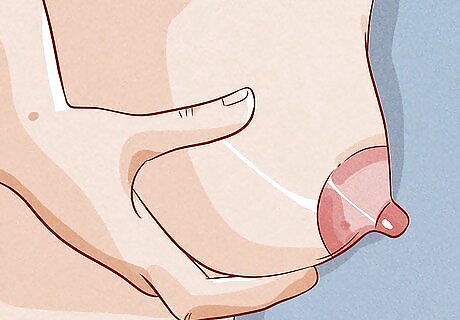 Roll your nipple between your forefinger and thumb. After massaging the breast, use your forefinger and thumb to gently pinch the nipple about ⁄2 in (1.3 cm) from the tip. Roll the nipple back and forth between your forefinger and thumb for about 1 minute. Don’t pinch too hard or you may hurt yourself! Keep a gentle but firm grip.