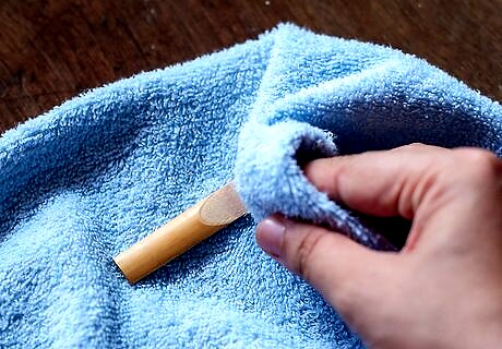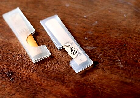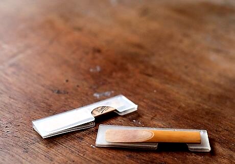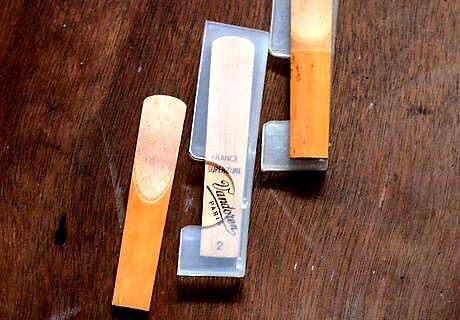 Break new reeds in gradually, so the dried material gets used to being wet again. Lay new reeds on a flat surface and firmly rub them from the heart to the tip with the back of a teaspoon. This enhances the reed's life expectancy by closing its fibers.