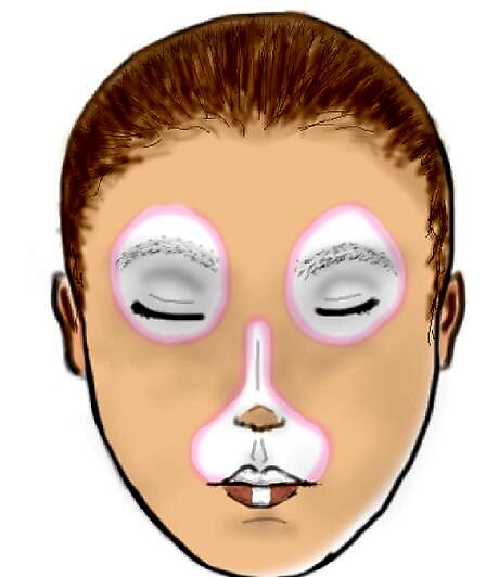 Once the white paint has dried, outline it with pink. Use a thin brush or a paint stick. Once again, you can use a wet watercolour pencil, but remember that it might not give you a good texture, and it may not be safe to use on your subject's face.
