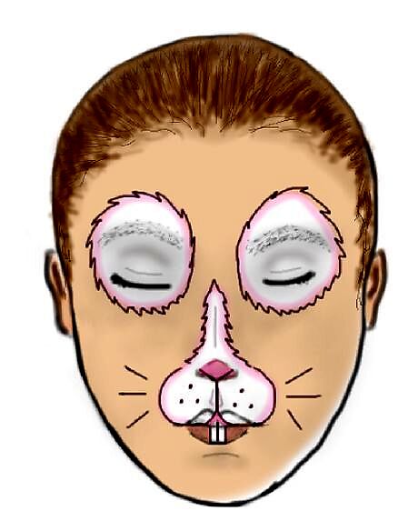 Get your supplies. You'll need: White paint Wet light pink paint (not paint cakes) or light pink paint crayons Wet dark pink paint (not paint cakes) or dark pink paint crayons Makeup sponges or large, soft poofy brushes that will give you a similar texture Wet black paint (not paint cakes) or black paint crayons Thin brushes Bunny ears (optional)