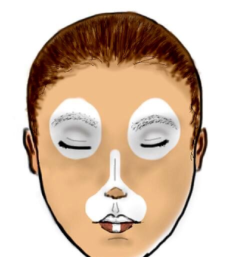 Paint the white patches on the eyes. Get your subject to close their eyes and paint white patches over their eyelids and around their eyes. It's best to use wet paint, not paint cakes, so it looks smooth and blended. Use a makeup sponge or a large, soft, puffy makeup brush to get a smooth texture. Be careful not to get paint into their eyes.